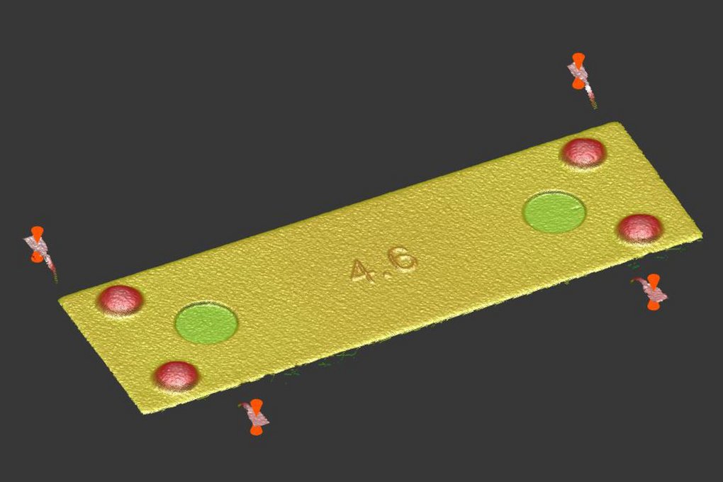 surfaceCONTROL 3D sensors are used for geometry measurement and inspection of surfaces. The sensor uses the principle of fringe light projection to detect diffusely reflecting surfaces and to generate a 3D point cloud. This point cloud is subsequently evaluated in order to recognize geometry, extremely small defects and discontinuities on the surface.